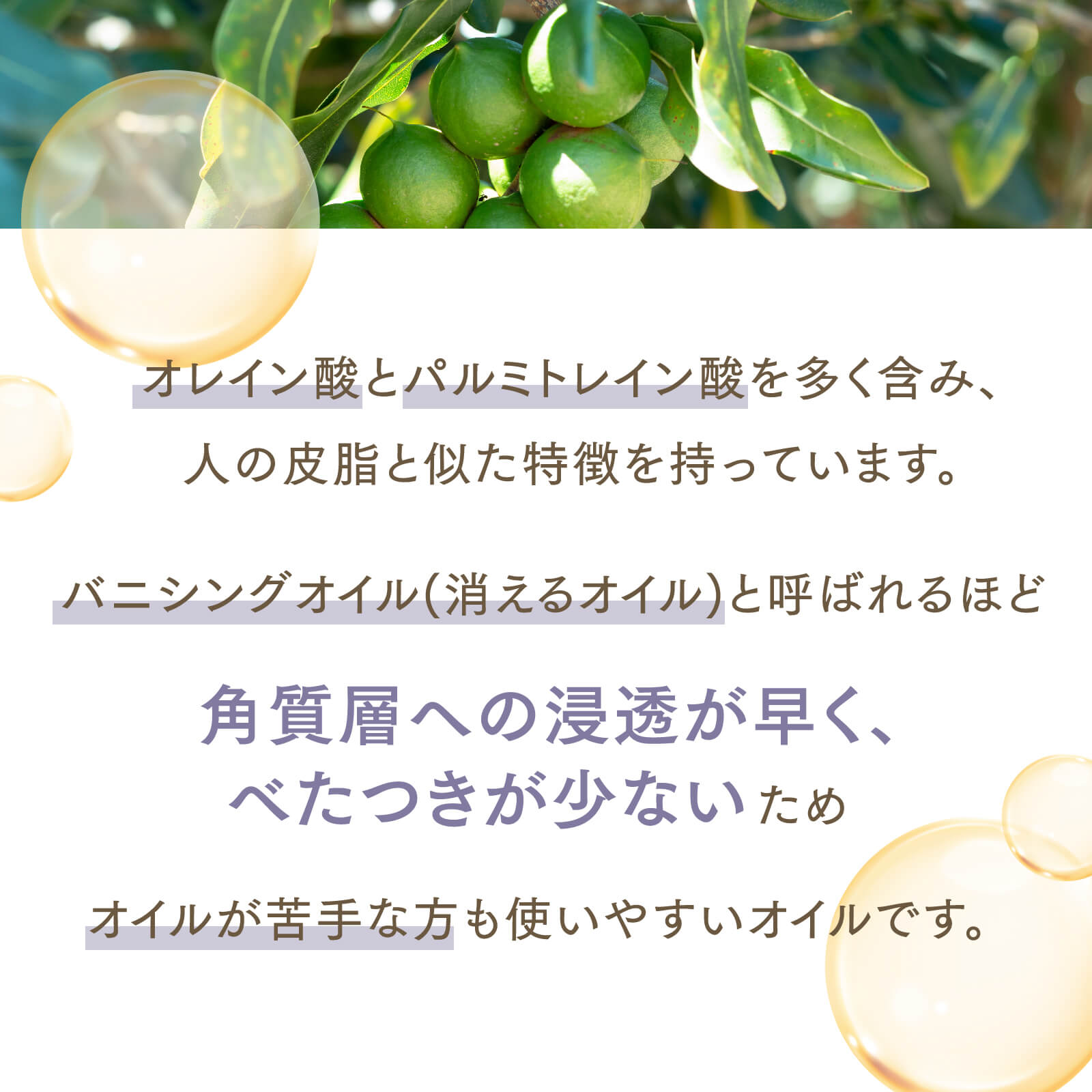 オイルの主成分は肌のうるおいやハリに関係のあるパルミトレイン酸。