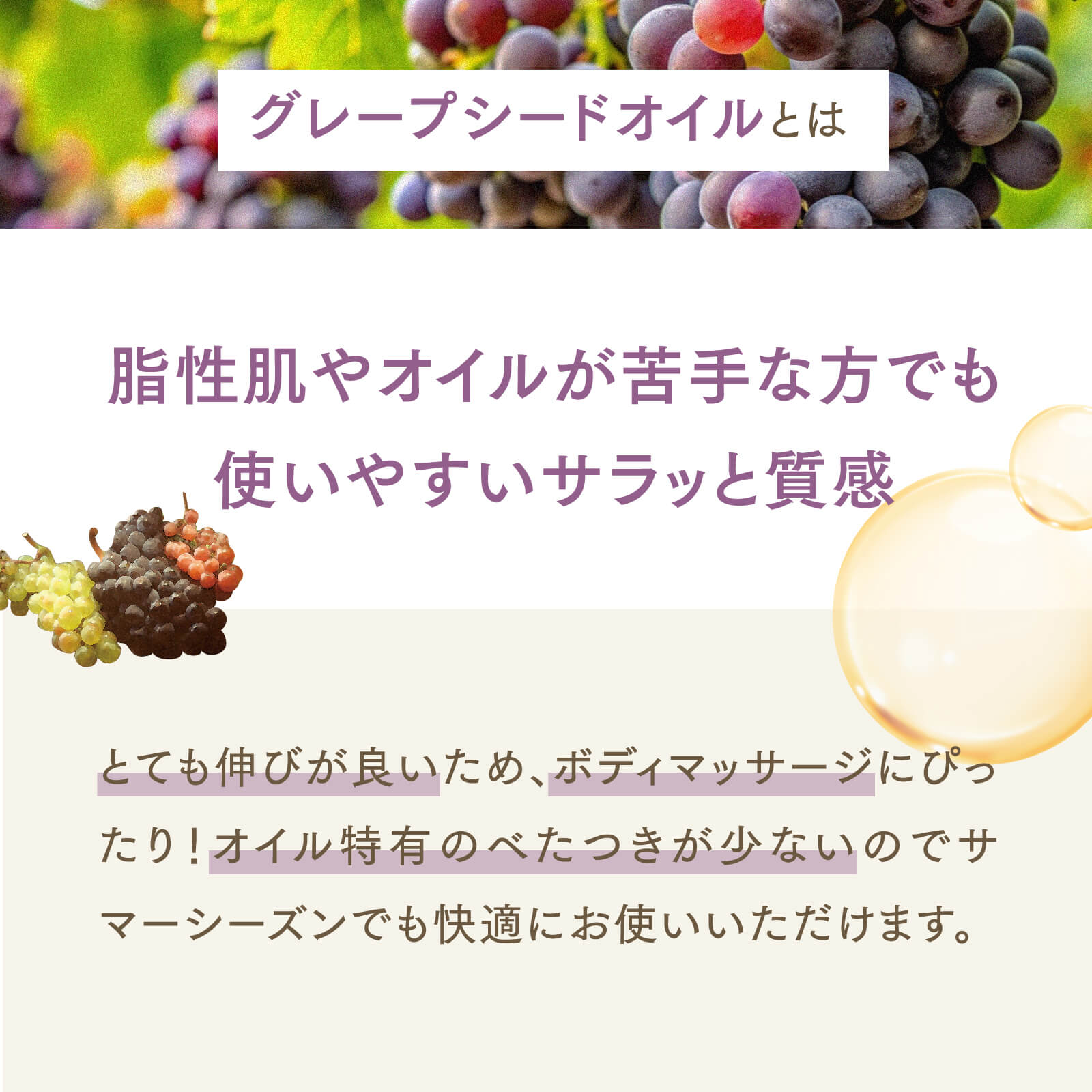 さらさらとした使い心地で、汗ばむ季節やオイルのべたつきが苦手な方、脂性肌の方にぜひお使いいただきたいオイルです。