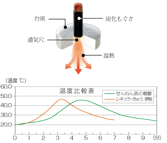 もぐさを炭化することにより、せんねん灸オフシリーズと比べて煙が少ないお灸です。