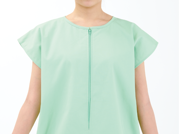 前面にファスナーがあることで患者様がラクに脱ぎ着が出来ます。