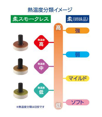 <商品説明> ロングセラーの「柔(やわら)」の姉妹品 柔の特長をそのままに、よもぎ100%の炭化モグサを完成させました。 ※本品は柔(姉妹品)より煙が少ない製品ですが、無煙ではなく多少の煙は発生いたします。 高中低と選べる3種類! ガツンっと響かせる「高」、しっかり熱感が伝わる「中」、やや優しい感の「低」の3種類の温度帯をご用意しております。 ※姉妹品の柔(やわら)4種類とは温熱感が異なりますのでご注意ください。