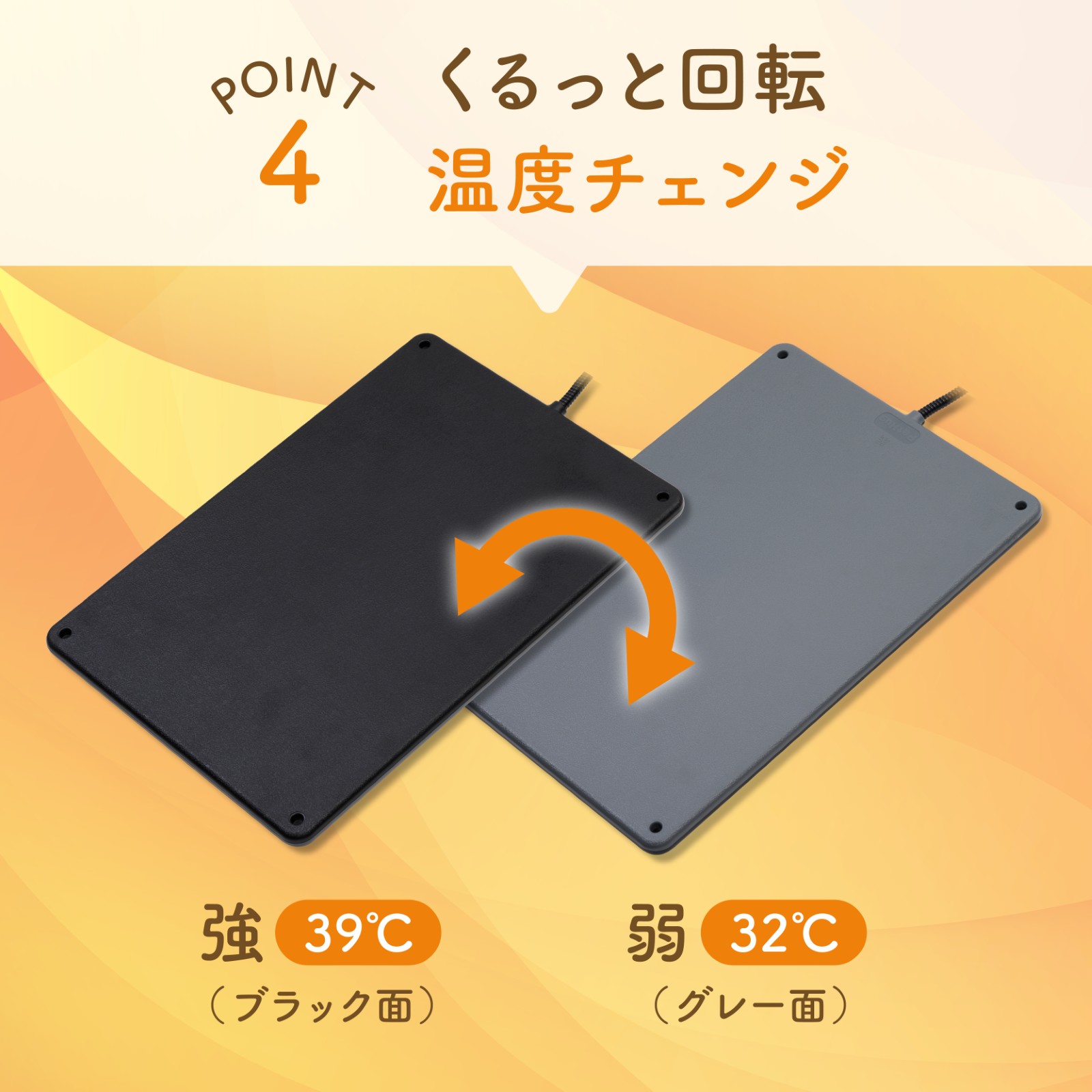 ブラック面の「強」は39度、グレー面の「弱」は32度のリバーシブル仕様です。