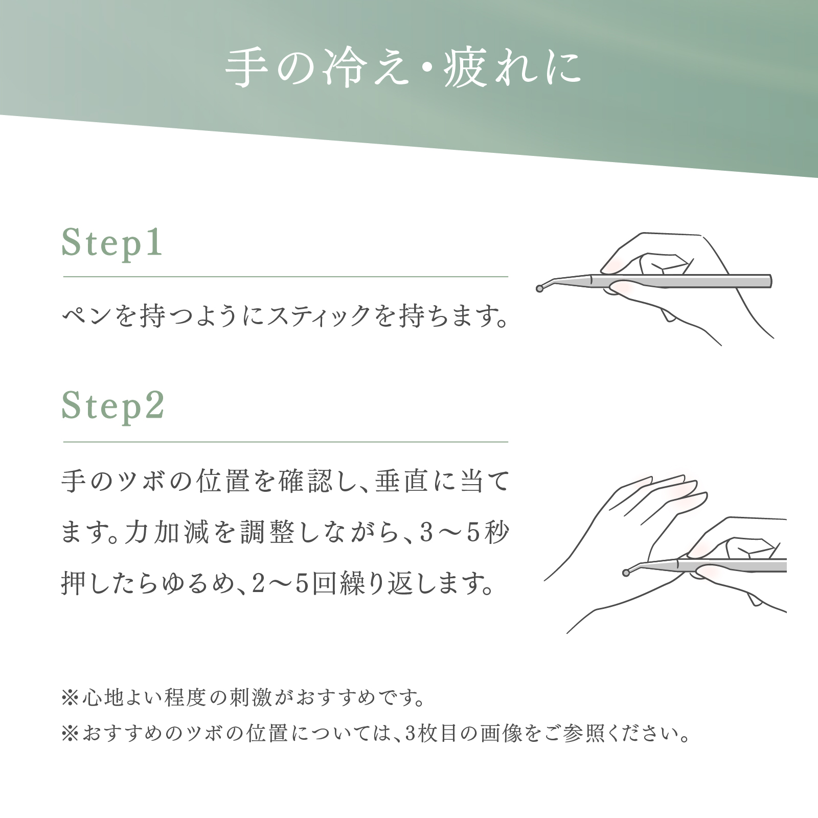 ツボやコリに押圧することで、心地よい刺激が得られます。