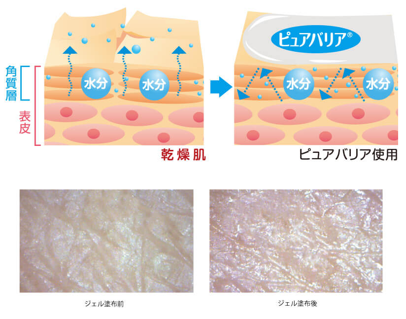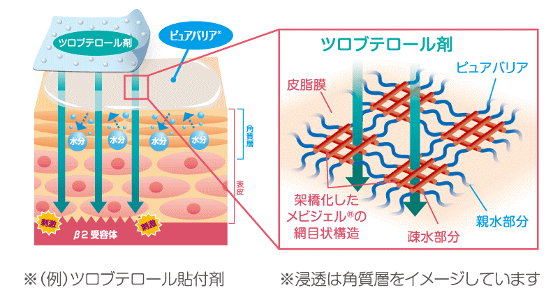 湿布を貼る前に!※形成されたバリア(皮膜)は網目状構造のため、網目を通過して有効成分が浸透します。