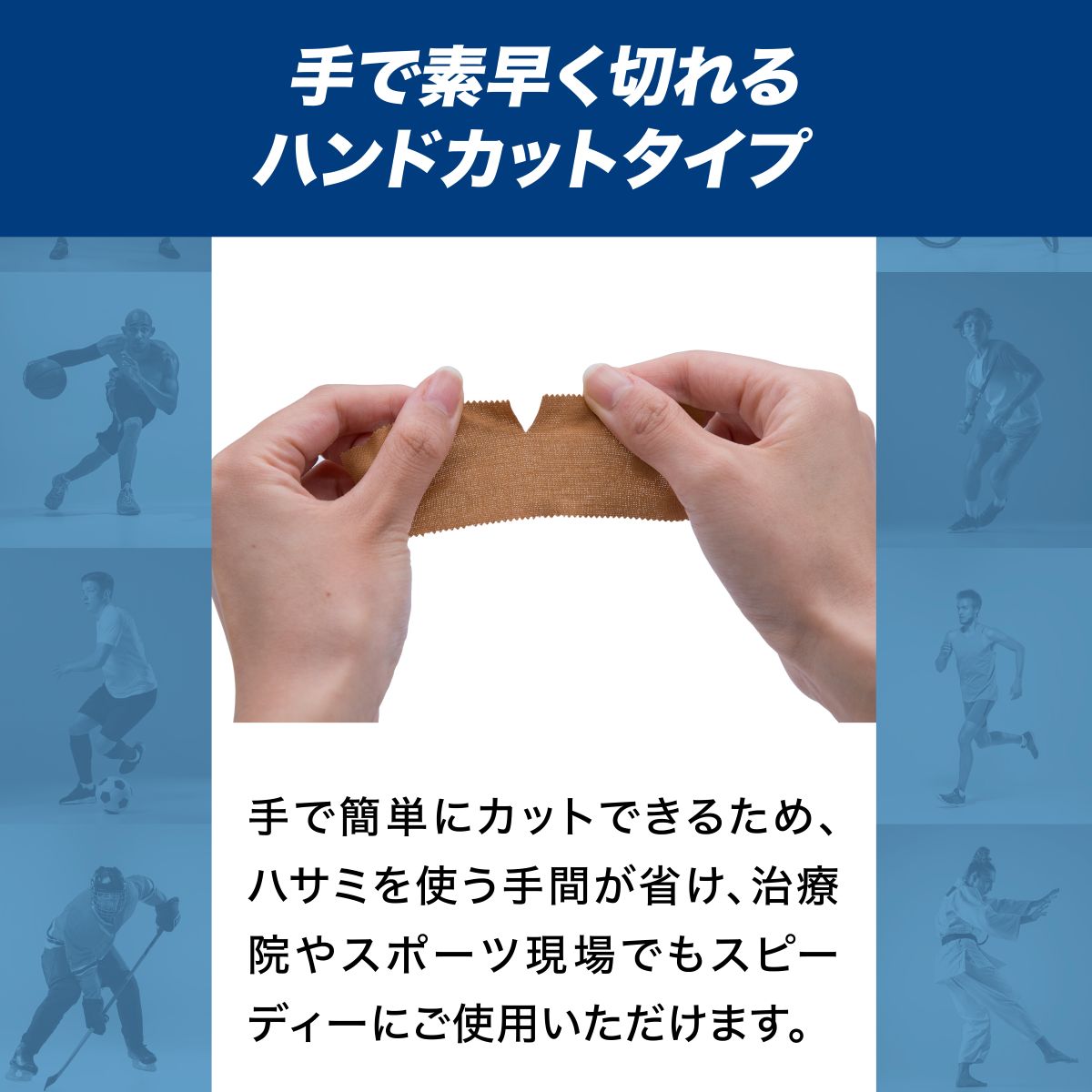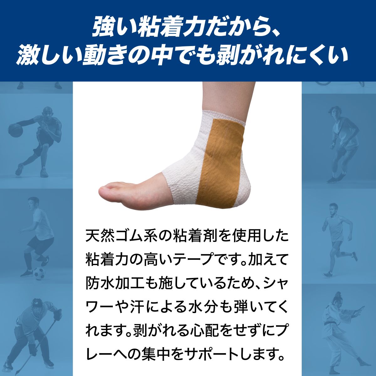 強粘着&耐久生地で動きをしっかり制御する非伸縮テープです。