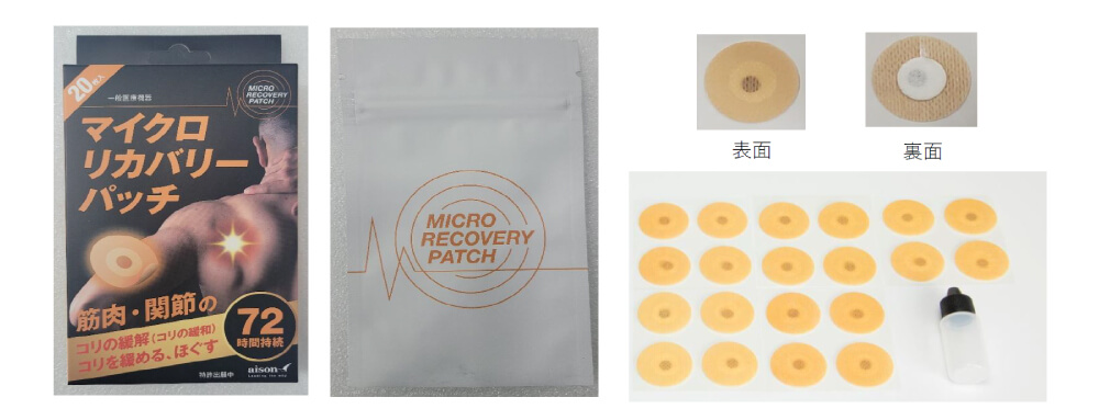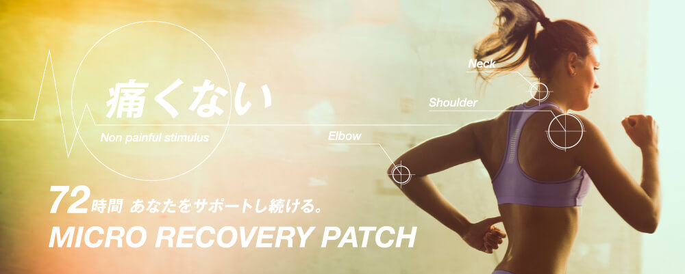 マイクロリカバリーパッチはこの身体に流れる生体電流と似た微弱電流を独自の金属特性によって発生させ、筋肉・関節のコリを緩和させます。