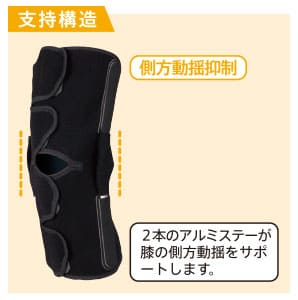 <商品説明> 膝関節の側方動揺をサポートする、ベーシックタイプの膝サポーター 縦横に伸びる立体的なWメッシュ素材を膝裏部に採用し、通気性を向上させました。 生地表面のフレンチパイルの起毛が短く、面ファスナーの着脱による生地の劣化を低減しているので、本体生地の反り返りが起きにくくなっています。 膝の動きへの追従性 ・膝の伸展屈曲運動で発生する、膝周りの浮きを低減する独自のリーフカット裁断設計です。 ・オフセットジョイント構造のアルミステーが、膝関節の側方動揺をサポートし過伸展を抑制します。 ・本体生地に着圧維持素材を使用しているので、時間が経過しても装着圧が低下しにくくなりました。 着脱操作性 ・面ファスナーとフラップを異なる形状で組み合わせ、装着中には外的な力ではがれにくく、外す時にははがしやすいアクティブフラップ設計です。 ・伸ばしやすい素材を採用し、本体生地が少ない力でも伸びやすくなりました。
