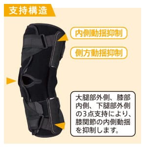 <商品説明> 大腿部外側、膝部内側、下腿部外側の3点支持により、膝関節の内側動揺を抑制する膝サポーター 縦横に伸びる立体的なWメッシュ素材を膝裏部に採用し、通気性を向上させました。 生地表面のフレンチパイルの起毛が短く、面ファスナーの着脱による生地の劣化を低減しているので、本体生地の反り返りが起きにくくなっています。 膝の動きへの追従性 ・膝の伸展屈曲運動で発生する、膝周りの浮きを低減する独自のリーフカット裁断設計です。 ・オフセットジョイント構造のアルミステーが、膝関節の側方動揺をサポートし過伸展を抑制します。 ・本体生地に着圧維持素材を使用しているので、時間が経過しても装着圧が低下しにくくなりました。 着脱操作性 ・面ファスナーとフラップを異なる形状で組み合わせ、装着中には外的な力ではがれにくく、外す時にははがしやすいアクティブフラップ設計です。 ・伸ばしやすい素材を採用し、本体生地が少ない力でも伸びやすくなりました。