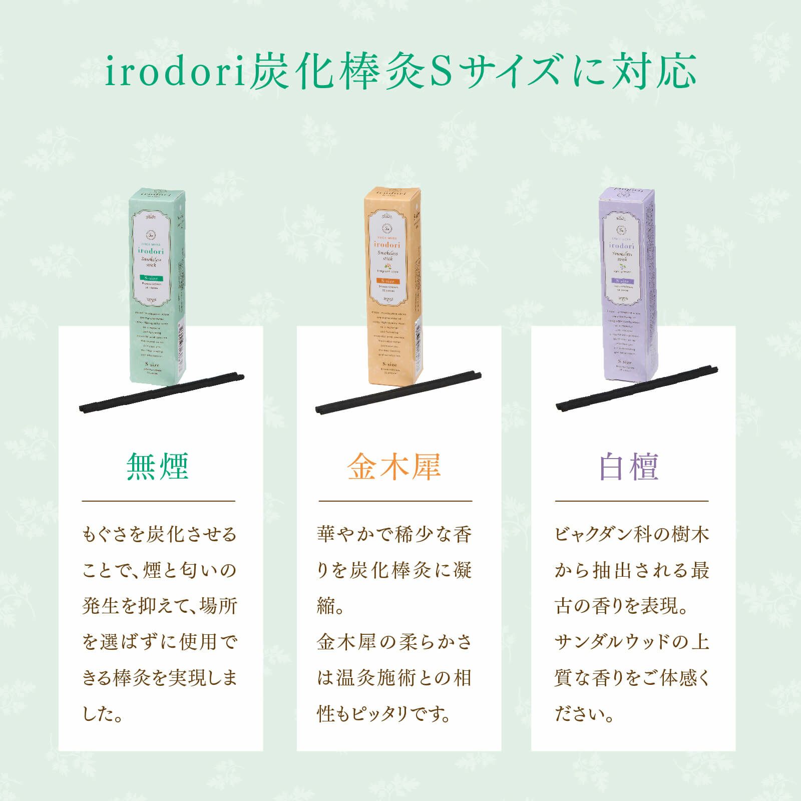 対応するirodori棒灸 各種Sサイズ (燃焼時間:約40分)