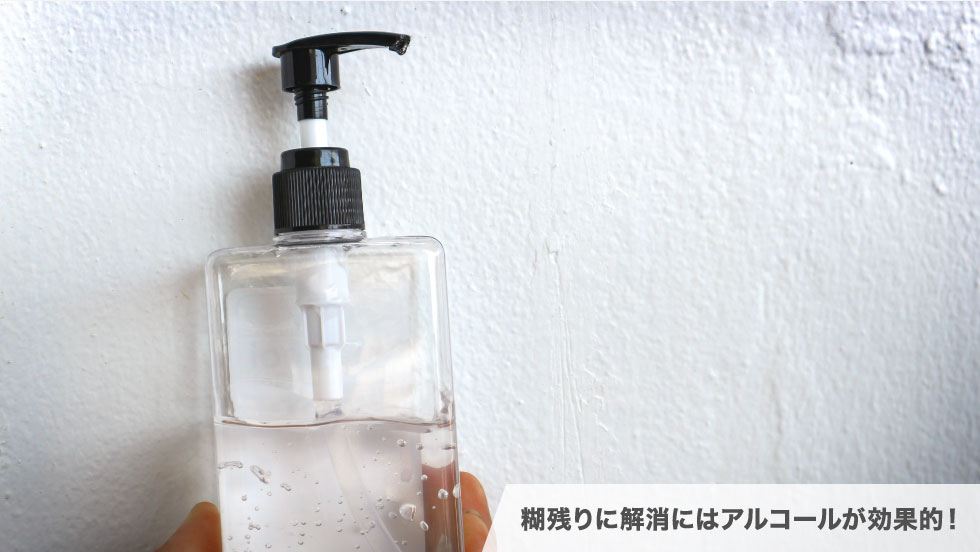 糊残り解消にはアルコールが効果的!テーピングの粘着性を弱めてくれます。