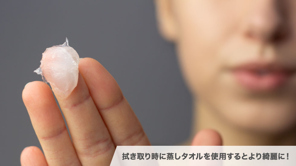③蒸しタオルでアプリコットオイル セラムを丁寧に拭き取ってください。