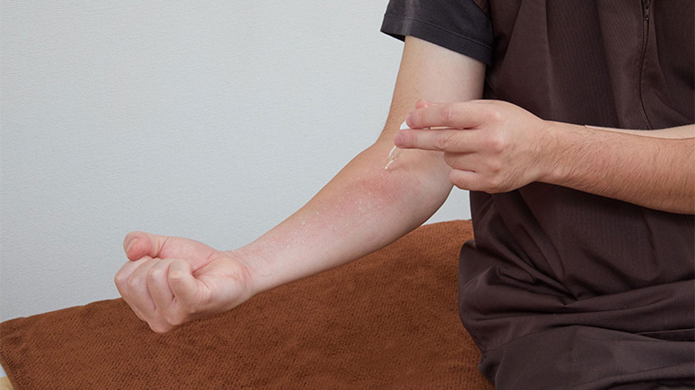 ②ベタベタ部分に優しく塗りこむようにマッサージしてください。
