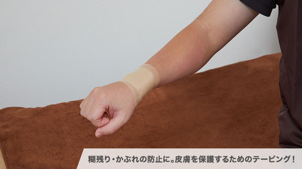 5.かぶれに負けないテーピングを使用する。